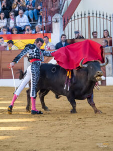 El primero de Pablo Aguado con el que se presentaba en la plaza de Almendralejo fue un toro negro, falto de fuerza y de raza que en ningún momento permitió el lucimiento del sevillano. Unos lances de probatura fueron los únicos que pudo administrar en el saludo a este su primero sin conseguir que el toro transmitiera lo más mínimo. Prácticamente fue nula la faena con la muleta, empeño y tesón no le faltaron a Pablo Aguado a la hora de emplearse con la franela, pero resultó un esfuerzo inútil por parte del diestro. Estocada un poco descolocada que sirvió para hacer rodar al toro pero que no daba para obtener premio.