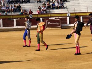 Cuarto novillo de la tarde número 74 negro de 380 kilos que salió aguanto y bruto, con dificultades para fijarse el capote y sin demasiada entrega de inicio, en varas tomó un leve picotazo echando la cara arriba dejando entrever su escasa colaboración, en banderillas destacó un buen par de Juan Luis moreno con un tercio algo más brillante que los anteriores, Tomás bastos recibió a su oponente de rodillas en el centro de la plaza para darle un pase cambiado por la espalda faena de mucho pundonor de Bastos ante un novillo complicado que soltaba la cara en el embroque aun así el novillero estuvo muy firme con él, apostando por sacar lo poco que el astado llevaba dentro con mucha disposición, con los aceros dejó una estocada algo desprendida suficiente para que el público valorara su entrega y le fuera concedida la primera oreja de la tarde.